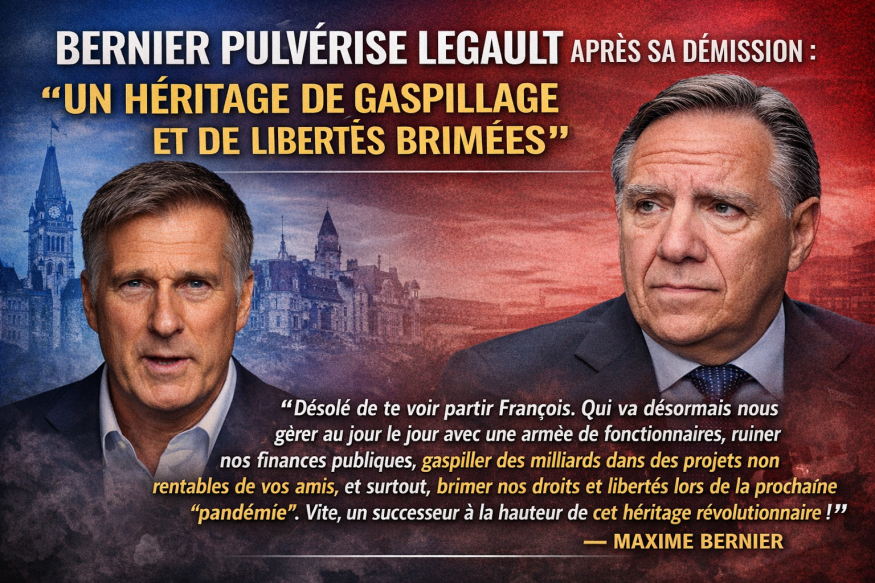 L’annonce de la démission de François Legault continue de faire réagir sur la scène politique canadienne et québécoise. Parmi les réactions les plus tranchées, celle de Maxime Bernier, chef du Parti populaire du Canada, ne passe pas inaperçue.